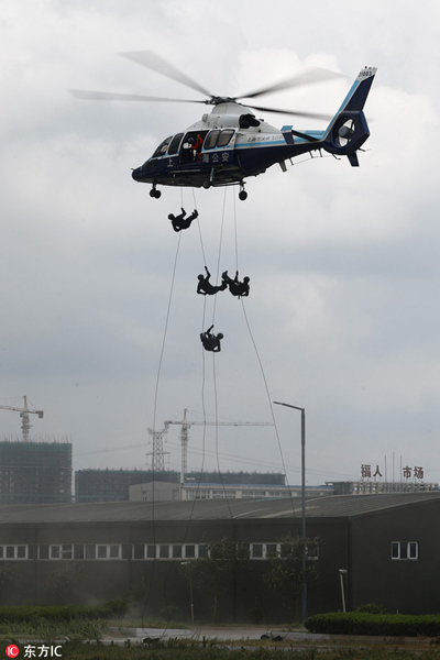 上海开展反恐综合演习 直升机、装甲突击车齐上