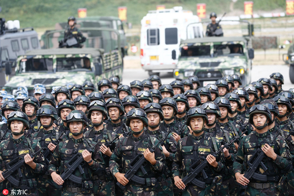 上海开展反恐综合演习 直升机、装甲突击车齐上