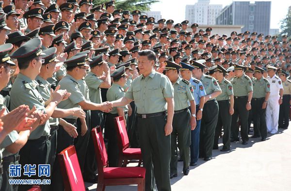 8月29日上午,中共中央总书记、国家主席、中央军委主席习近平视察战略支援部队机关,代表党中央和中央军委,对战略支援部队第一次党代表大会的召开表示热烈的祝贺,向战略支援部队全体指战员致以诚挚的问候。这是习近平听取战略支援部队工作汇报后发表重要讲话。新华社记者李刚摄