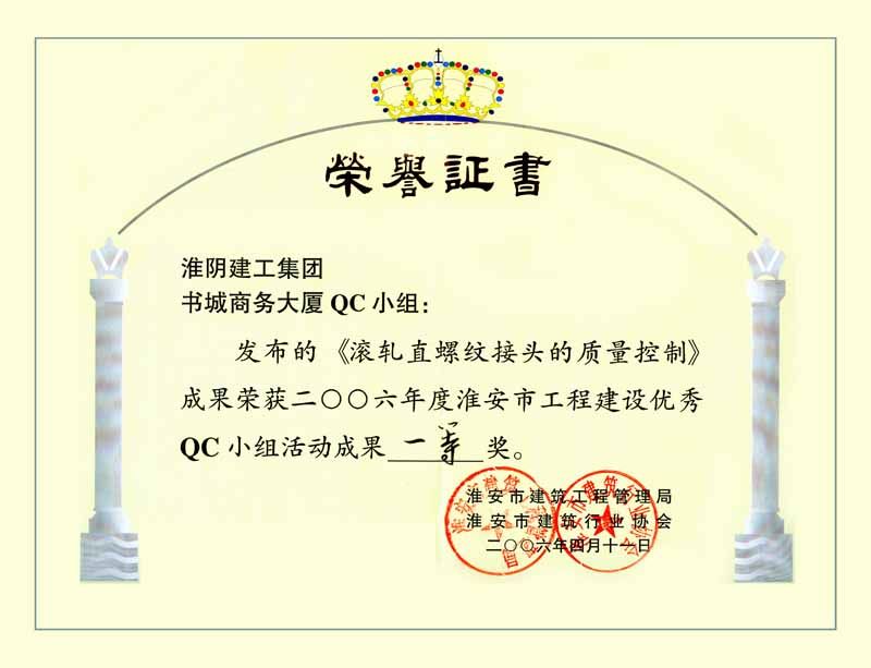 2006年QC滚轧直螺纹接头的质量控制(一等奖)