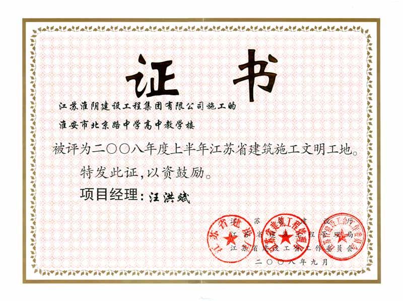 2008年省文明工地-淮安市北京路中学高中教学楼-汪洪斌