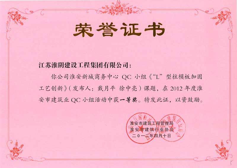 2012年市QC“L”型柱模板加