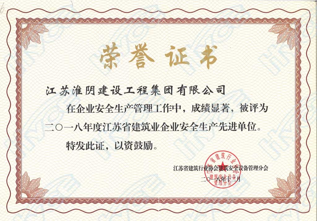 2018年度江苏省建筑业企业安全生产先进单位