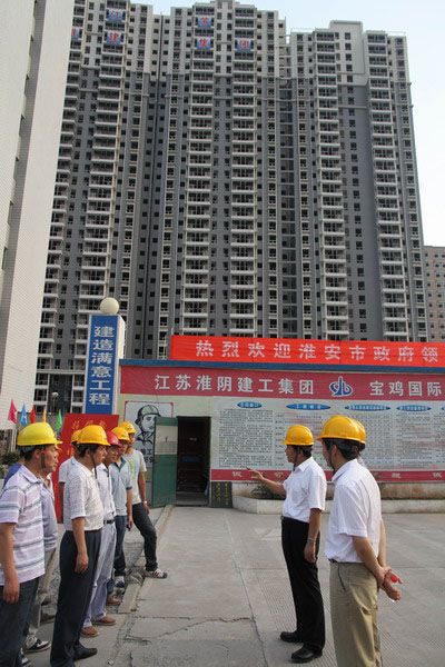 作为淮安市建筑业的龙头骨干企业,近年来集团,在稳固淮安市场的同时,不断注重外阜市场的开拓。特别是在中西部,先后开拓了陕西、新疆等地市场,宝鸡国际商业广场项目就是其中之一。该项目23万平米,涵盖住宅、商业、办公、酒店等业态,正在施工的2#住宅楼工程,地上33层、地下2层,建筑面积6.2万平米,是目前宝鸡市单体面积最大、高度最高的住宅楼。在视察交流中,刘市长希望集团宝鸡分公司:第一,要加强和地方建筑主管部门的联系,加强和当地同行的交流,把自己融入到宝鸡城市建设的队伍中去。第二,要搞好安全生产,安全是一切工作的前提和基础,安全不仅关系到企业的效益,更加关乎家庭的幸福和社会的稳定。第三,要注重工程质量,百年大计,质量为本,要把宝鸡国际商业广场项目做成精品工程、形象工程,打响淮建集团的品牌,打造淮安建筑业的品牌。第四,要关心照顾好职工的生活,出门在外不容易,在带领职工干好工作的同时,更有了解职工的所思所想,让在宝鸡工作的职工安心,让职工的家人放心。市政府将一如既往地关心关注淮建集团的发展,支持淮建集团领导班子在许金华董事长的带领下,不断创新经营理念,提升经营业态,加强管理,大胆工作,做强做大。